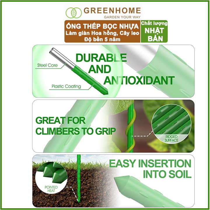 Ống thép bọc nhựa Nhật Bản - độ bền 5 năm - dùng làm giàn đỡ hoa Hồng, cà chua, giàn cho dây leo✅ ĐẶC ĐIỂM NỔI BẬT Ống thép bọc nhựa Nhật Bản: