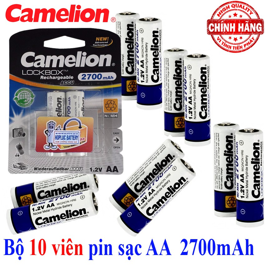 Bộ 10 viên Pin Sạc AA (2A) Camelion LockBox Rechargeable Accu 2700mAh - 1.2VDung lượng 2700mAh sử dụng lâu nhất