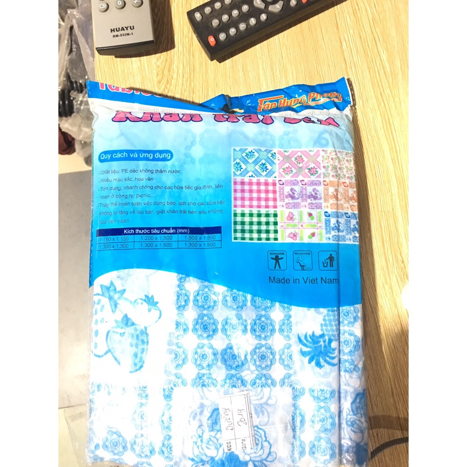 Khăn trải bàn dùng 1 lần đủ màu sắc hoa văn shop sẽ giao màu ngẫu nhiên ạ- Chất liệu : PE dẻo không thấm nước