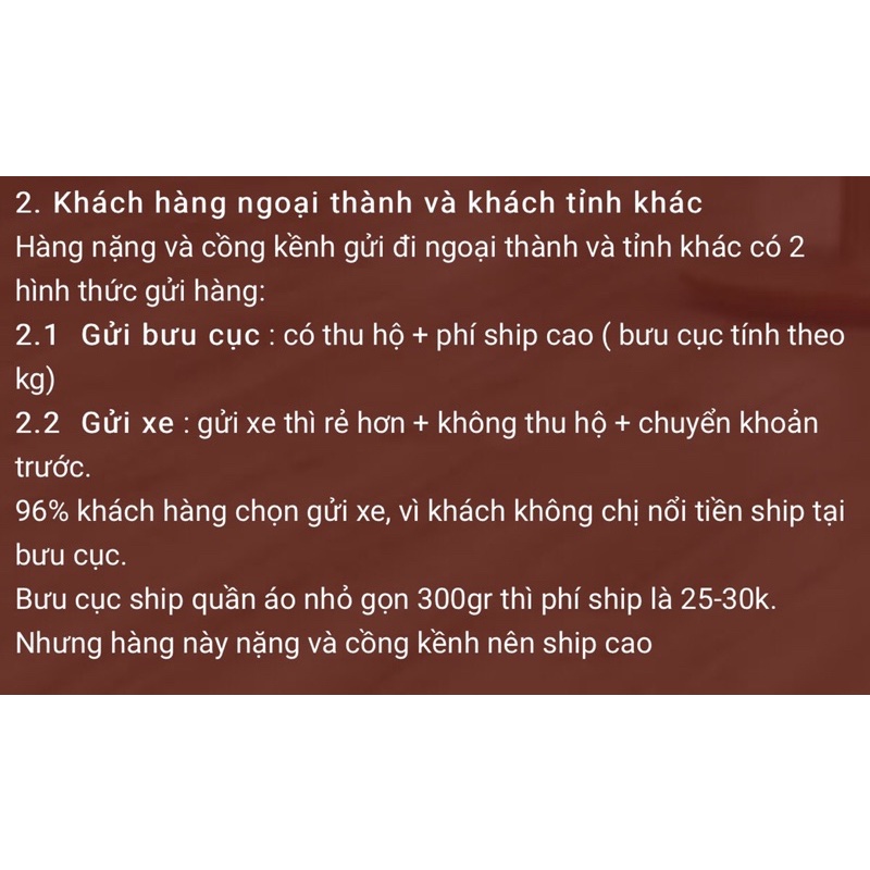 Anh chị có thể liên hệ với shop theo SĐT 093.9955.369 để được tư vấn về việc vận chuyển.
