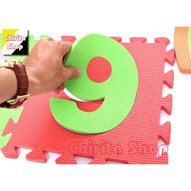 Thông tin sản phẩm:- Tên sản phẩm: Bộ 10 miếng thảm xốp lót sàn ghép số hoặc hình học cho bé - Thoại Tân Thành