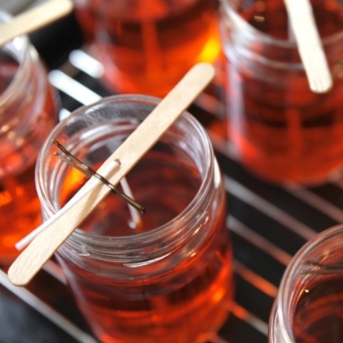 - Đặt que giữ lên miệng ly và chỉnh cho dây bấc nằm ở vị trí trung tâm ly nến. Rót sáp nến vào ly và chờ cho đến khi sáp nến nguội hẳn mới vỏ que gỗ giữ bấc ra. Dùng kéo cắt đi phần tim thừa là đã hoàn thành sản phẩm nến ly và bạn có thể sử dụng được ngay.