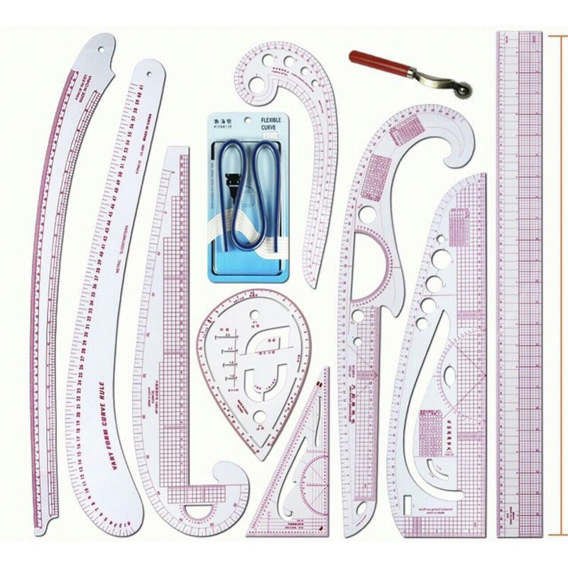 Bộ 10 thước và 1 cây lấy dấu ứng dụng nhiều trong cắt may chuyên nghiệp