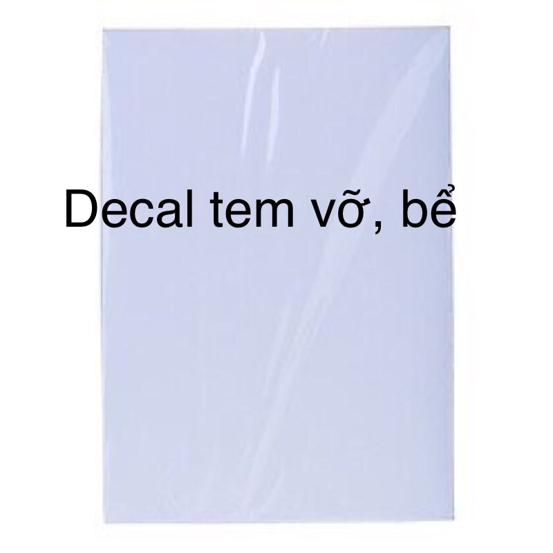- Xấp 10 tờ Decal khổ A4 hoặc lớn hơn 1 xíu dùng để in tem vỡ, tem bể, tem bảo hành.- Decal PVC tem vỡ này là keo nước, loại decal vỡ dẻo nên là khi dán vào nó sẽ ko vỡ ngay ạ. Để tem sau 12h keo chết tem sẽ tự bể khi đụng vào để bóc tem ra.