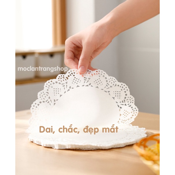Tấm giấy lót đĩa ăn thấm hút dầu mỡ viền hoa xinh xắn, với chất liệu giấy tốt, dai, chắc, thấm hút nhanh, mang lại cho bạn bữa ăn bớt dầu mỡ, khỏe mạnh hơn. Thiết kế xinh xắn còn khiến cho bữa ăn thêm đẹp mắt, vui vẻ.Giấy có 2 loại kích thước :