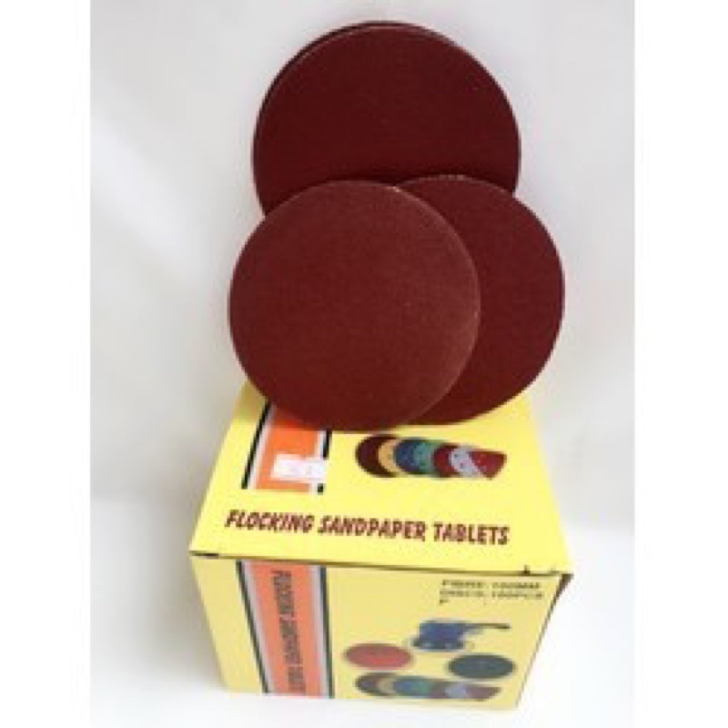 Giấy nhám tròn 1 mặt nhám , 1 mặt có tơ dính dùng để dán lên phớt nhựa tròn gắn máy mài