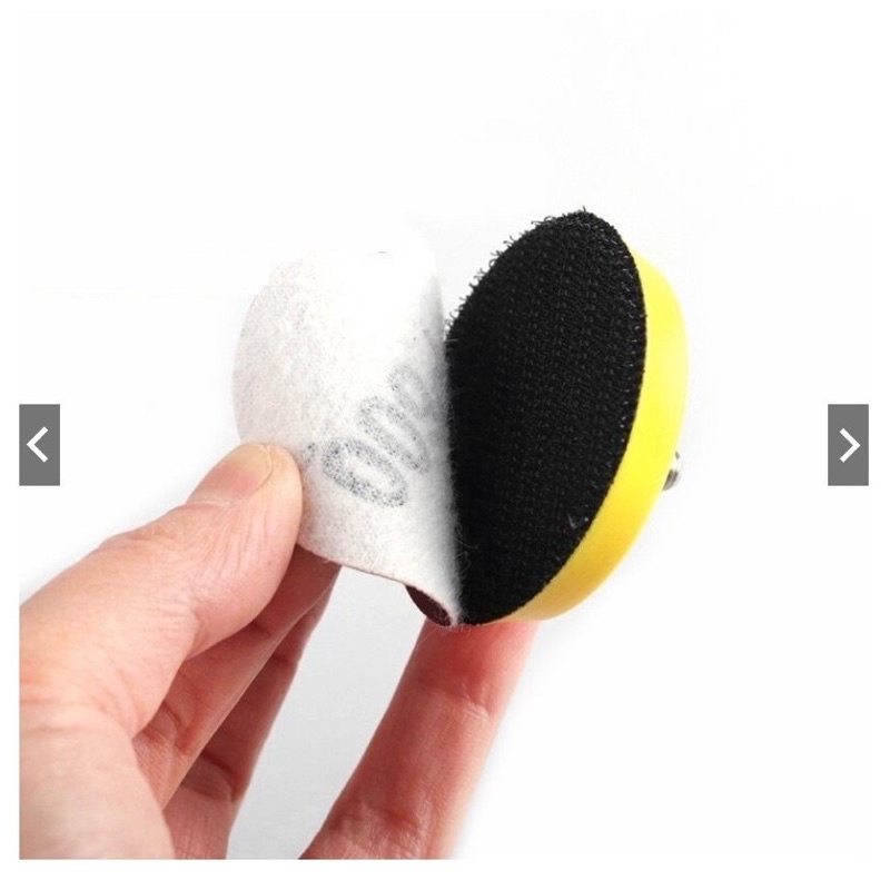 Giấy nhám tròn 1 mặt nhám , 1 mặt có tơ dính dùng để dán lên phớt nhựa tròn gắn máy mài