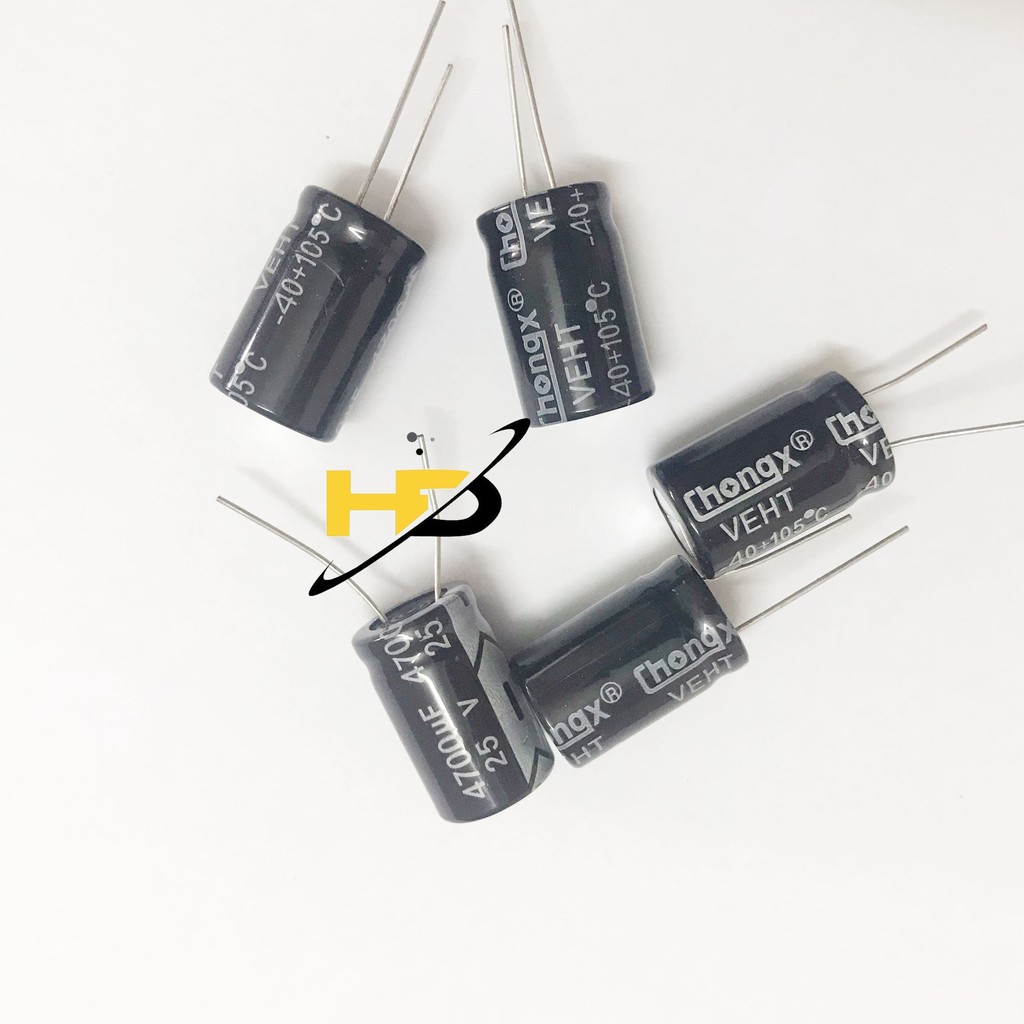 Tụ hóa 4700uF 25V là tụ phân cực, có dung môi là một lớp hóa chất. Tụ hóa 4700uF 25V là tụ có hình trụ, trị số được ghi trực tiếp trên thân tụ.Sau trị số điện dung bao giờ cũng có giá trị điện áp, điện áp ghi trên tụ chính là điện áp cực đại mà tụ có thể chịu được, vượt qua giá trị này thì lớp cách điện sẽ bị đánh thủng , trong thực tế ta phải lắp tụ có trị số điện áp cao gấp khoảng 1,5 lần điện áp của mạch điện.