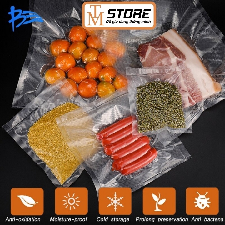 ✅Là loại túi làm từ hạt nhựa nguyên sinh được triết xuất trực tiếp từ dầu mỏ, ko phải hạt nhựa tái chế thông thường. ✅Túi có các hạt sần nhỏ dùng chuyên dụng cho phương pháp bảo quản thực phẩm chân không. Hạt sần tạo các khe nhỏ, dày đặc giúp không khí luồn qua khi dùng máy hút chân không cho thực phẩm.