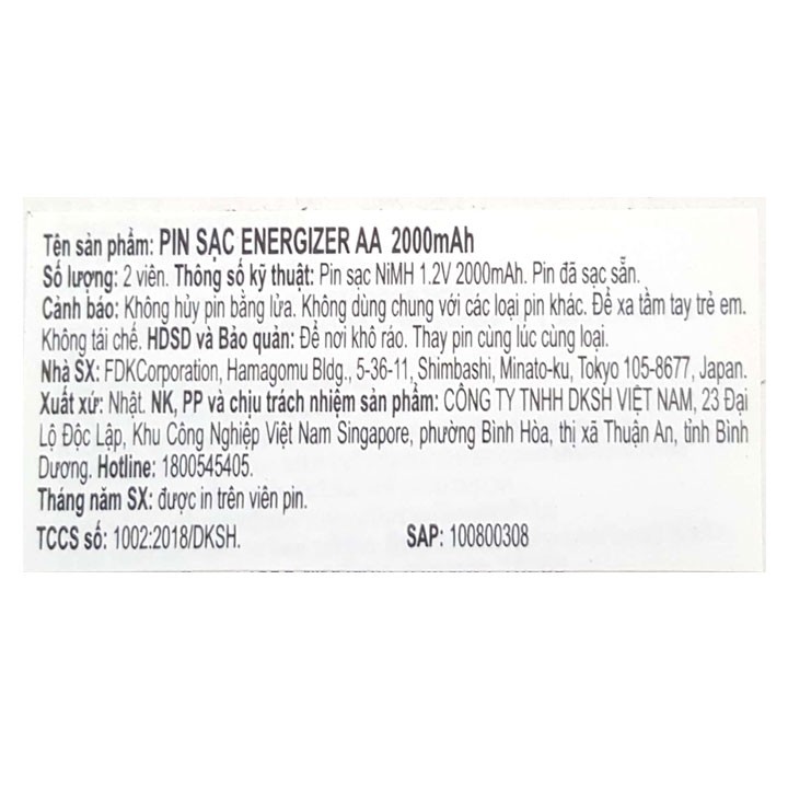Hãng Energizer là thương hiệu nổi tiếng của Mỹ, là thương hiệu hàng đầu về pin sạc trên Thế giới,với các sản phẩm chất lượng cao và an toàn với ngườisử dụng và môi trường. Pin sạc AA của Energizer với dung lượng 2000mAh, pin có thể sạc lên tới 1000 lần, có nghĩa là bạn mua pin 1 lần mà có thể dùng đến 1000 lần, rất tiện lợi và tiết kiệm chi phí.