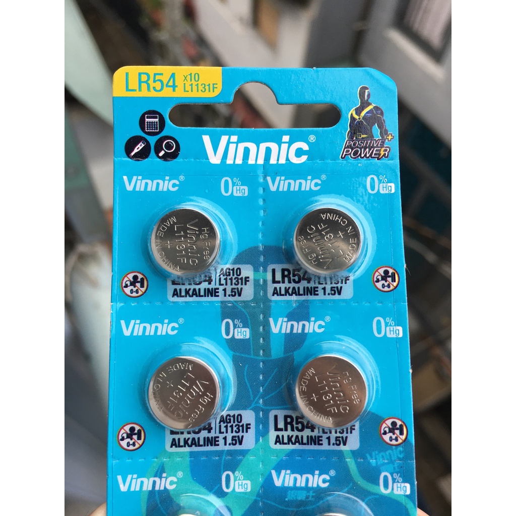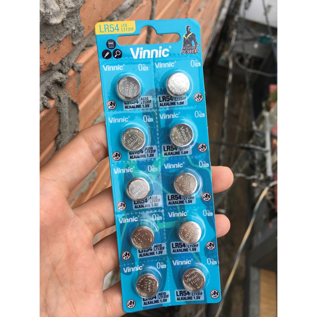 Pin Cúc Áo G10 - LR54 - L1130 - L1131 Vinnic 1,5V sử dụng thay pin cho máy tính, móc khóa điện tử, đồ chơi điện tử, cân điện tử, thiết bị y tế, máy tính cầm tay Casio, Remote và một số thiết bị khác...Các mã dùng loại Pin này: G10 hoặc AG10 hoặc LR54 hoặc L1130 hoặc L1131