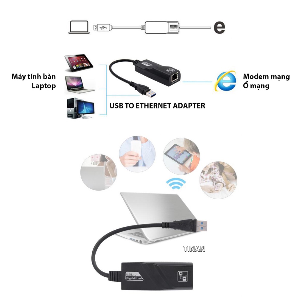 ✅ Trước kia, nếu bạn muốn sử dụng mạng Internet, bạn phải dùng dây cáp thông dụng, hoặc tiên tiến hơn là dùng wifi. Nhưng ngày nay, bạn sẽ làm gì nếu không có wifi, và chỉ có thể dùng cáp, nhưng không may cổng cắm trên laptop của bạn đã bị hỏng, không thể kết nối mạng được?! Đừng lo lắng, - USB Lan hỗ trợ gắn dây mạng thông qua cổng USB. USB Lan được thiết kế chuyên dụng và thuận tiện cho bạn sử dụng mạng mọi lúc mà không phải e ngại những sự cố nhỏ trên laptop của bạn.