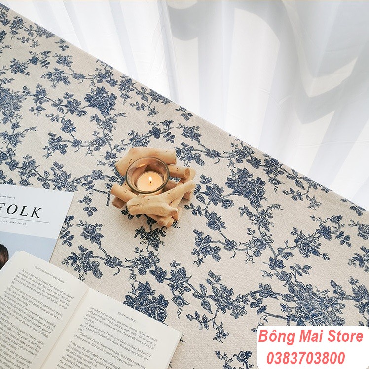 Khăn trải bàn, thảm picnic vải canvas trắng xanh họa tiết hoa leo phong cách vintage - T047Khăn được sử dụng với nhiều công dụng : khăn trải bàn trà, trải bàn làm việc, trải sofa decor phòng, thảm picnic, phụ kiện chụp ảnh.