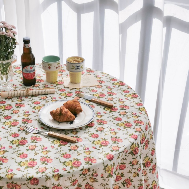Nhà cửa & Đời sống > Trang trí nhà cửa > Khăn trải bàn || [100*150cm] Khăn trải bàn, thảm picnic vải canvas trắng đỏ họa tiết bông hồng phong cách vintage - T046Còn hàng