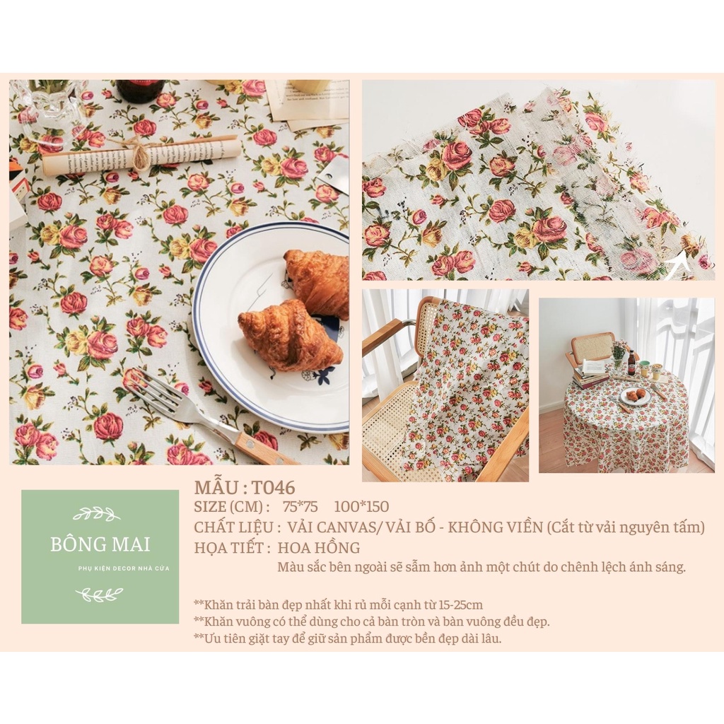 Khăn trải bàn, thảm picnic vải canvas trắng đỏ họa tiết bông hồng phong cách vintage - T046Khăn được sử dụng với nhiều công dụng : khăn trải bàn trà, trải bàn làm việc, trải sofa decor phòng, thảm picnic, phụ kiện chụp ảnh.