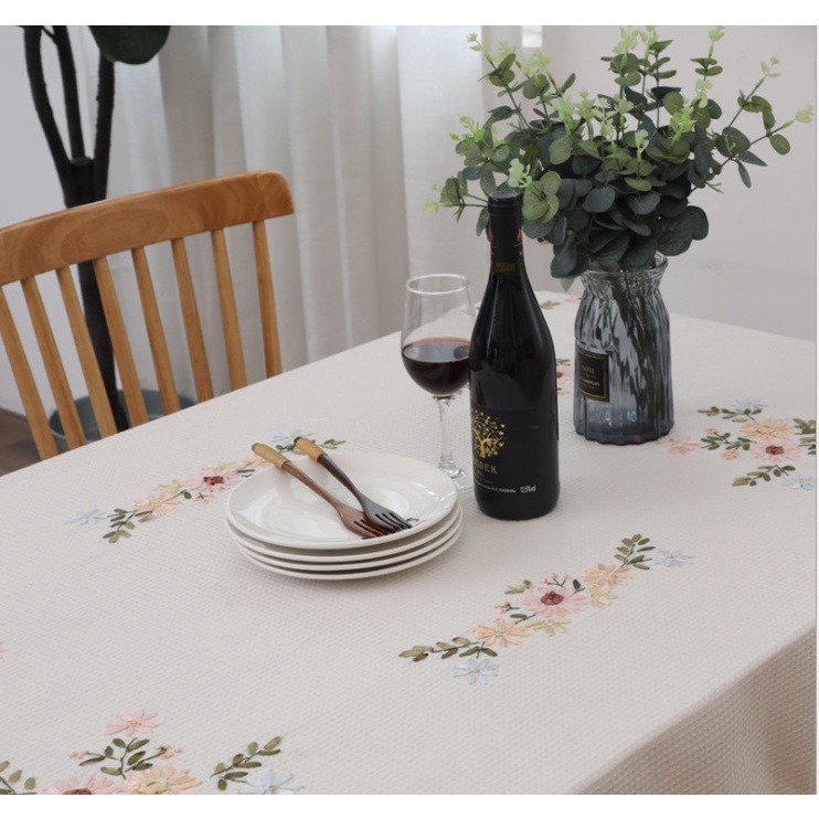 Nhà cửa & Đời sống > Trang trí nhà cửa > Khăn trải bàn || [100*150cm] Khăn trải bàn vải cotton viền ren hoạ tiết thêu nổi phong cách vintage sang trọng [T051]Còn hàng