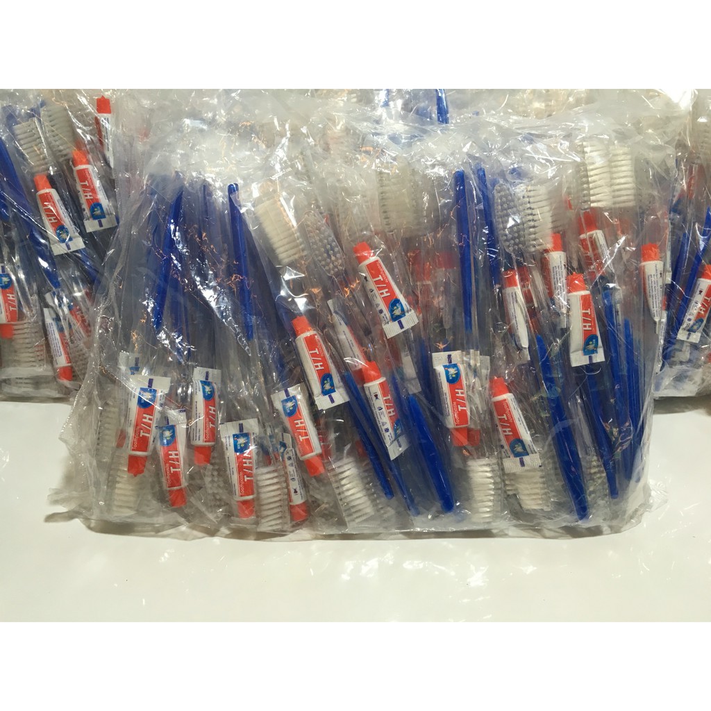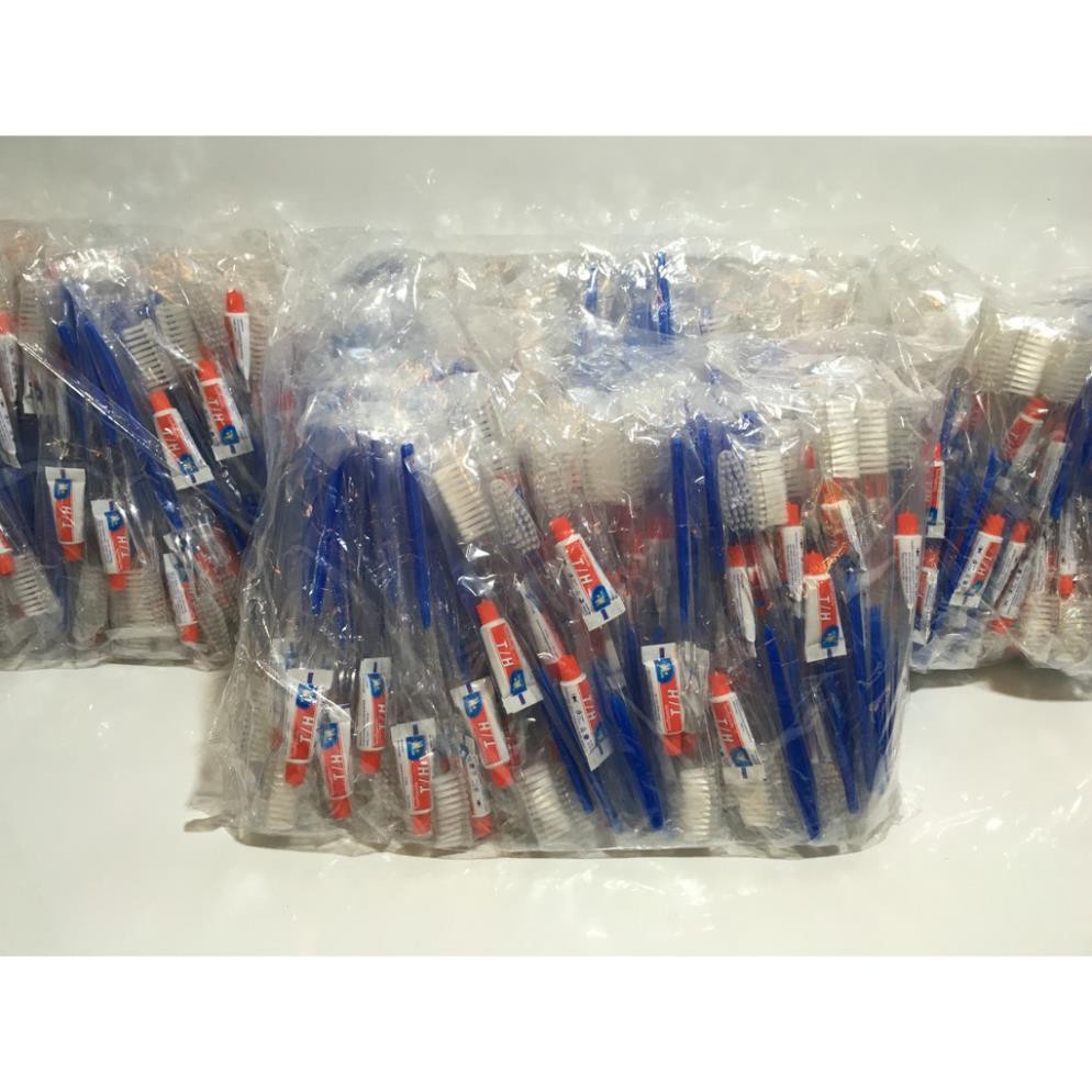 100 bàn chải cán trong xanh kem tuýp 3g túi nilon trong