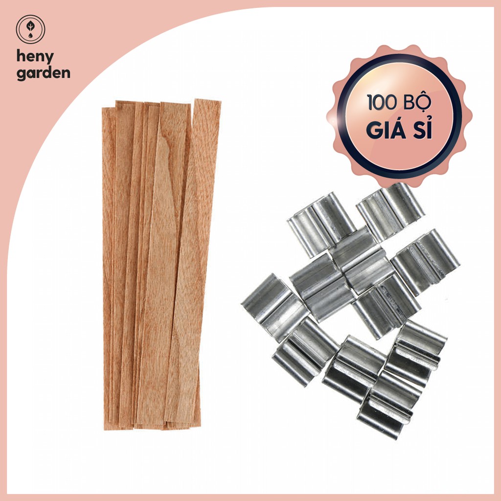 100 Bộ Bấc Nến Gỗ + Chân Kẹp Không Khói Cho Khách Sỉ - Tặng Tinh Dầu Mẫu Thử Heny Garden
