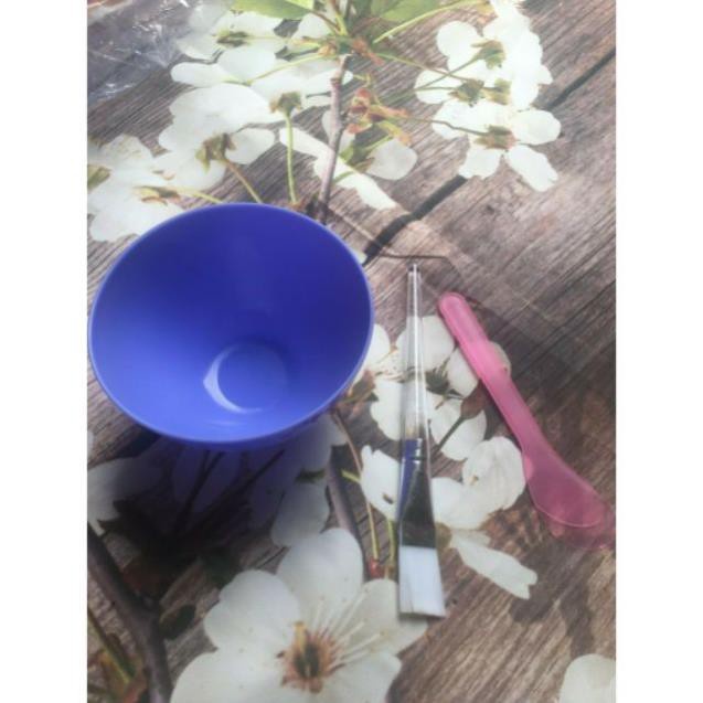 Bộ bát trộn mặt nạ gồm bát, muỗng tròn, que nhựa, cọ quét chuyên dùng trong spa