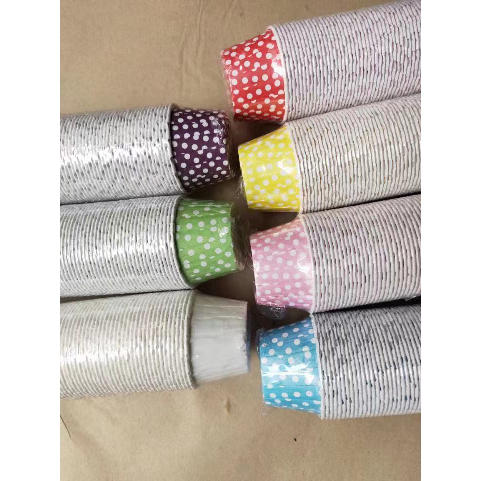 100 cái cốc viền chấm bi dùng đựng bánh cupcake các loại