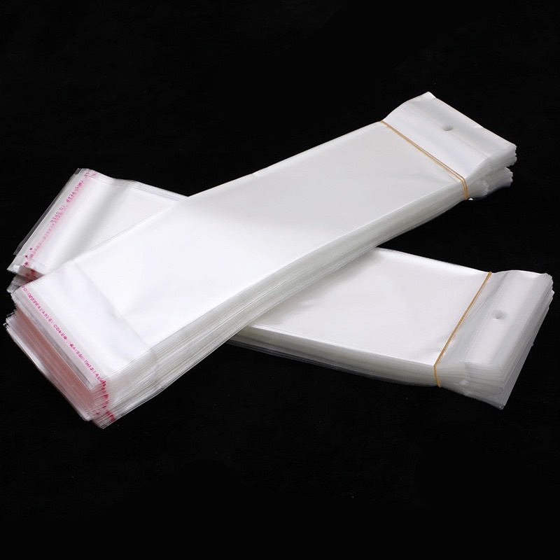 ⭐️100 cái túi kiếng trong Opp nilon dán miệng màng ngọc có lổ treo⭐️kích thước lòng túi: 8x28cm, phần treo 3cm, phần dán 4cm tổng độ dài 35cm