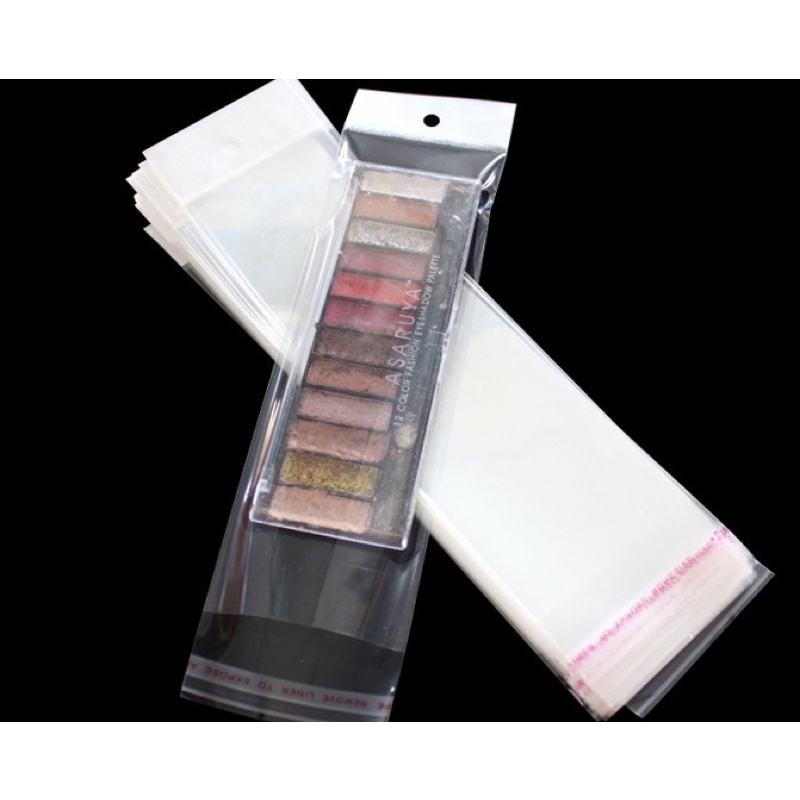 Nhà cửa & Đời sống > Dụng cụ chăm sóc nhà cửa > Túi nilon & túi rác || 100 cái túi kiếng trong 8x28 (+3+4) Opp nilon dán miệng màng ngọc có lỗ treo rộng 8cm dài 28cmCòn hàng