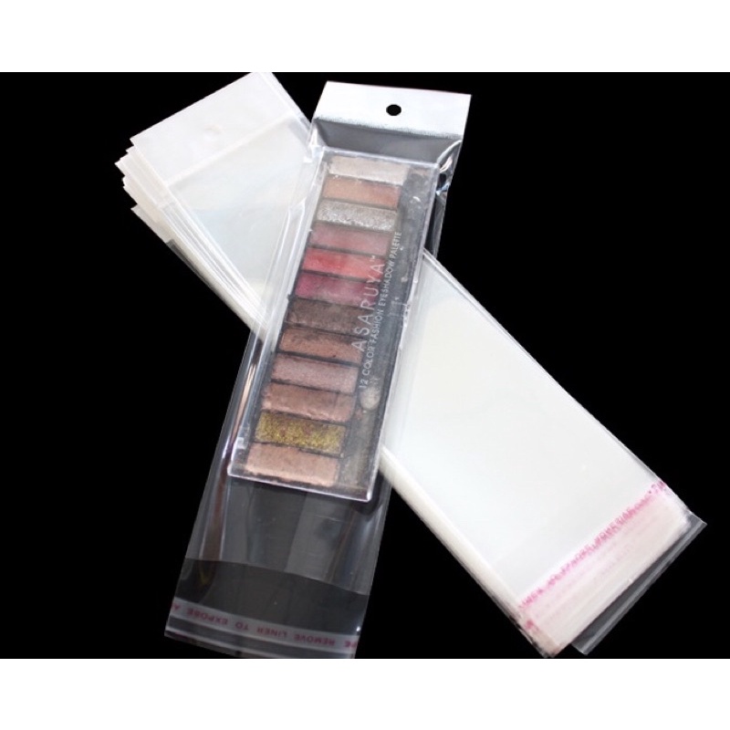 100 cái túi kiếng trong 8x28 (+3+4) Opp nilon dán miệng màng ngọc có lỗ treo rộng 8cm dài 28cm