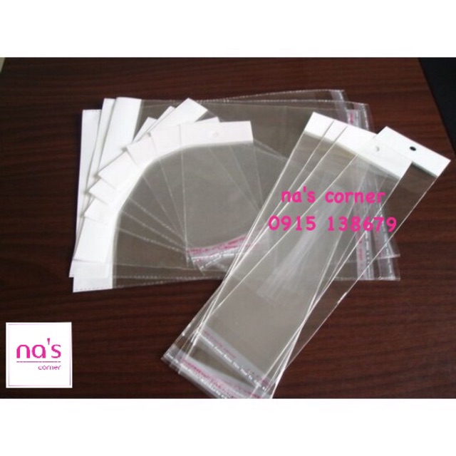 Túi kiếng trong dán keo có lỗ treo Túi bóng kính nilon opp có miếng màng ngọc treo lên hoặc không có miếng treo, tuỳ phân loại khách chọn nha.Link 1
