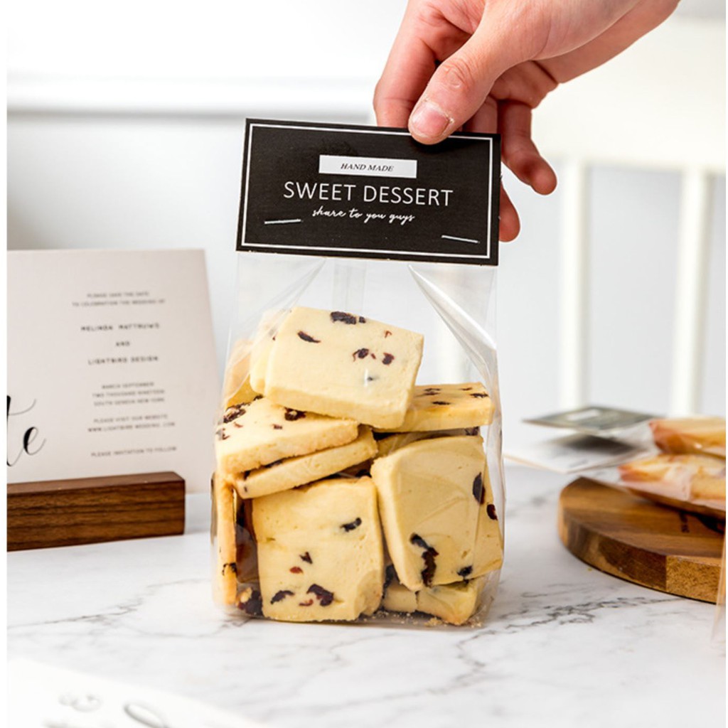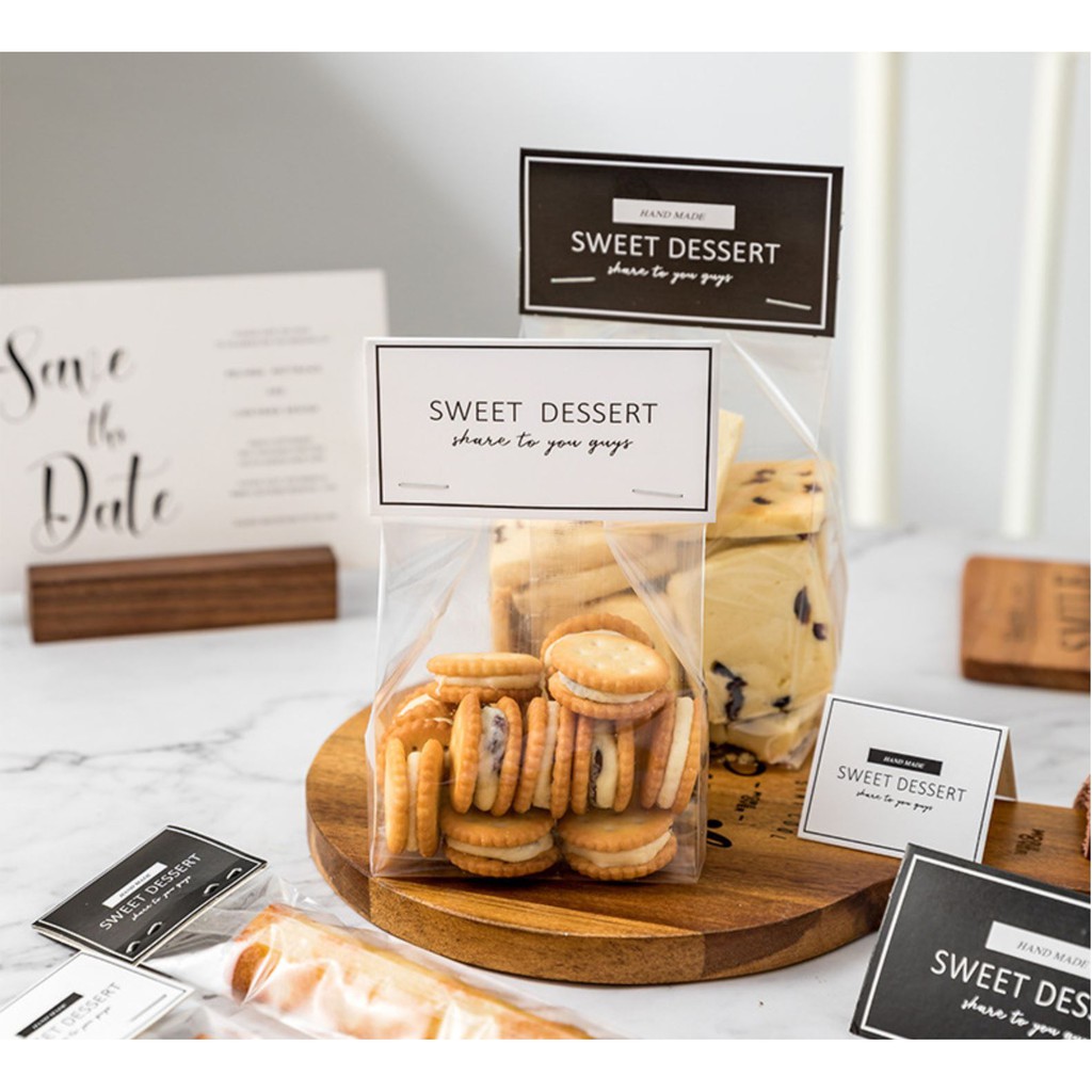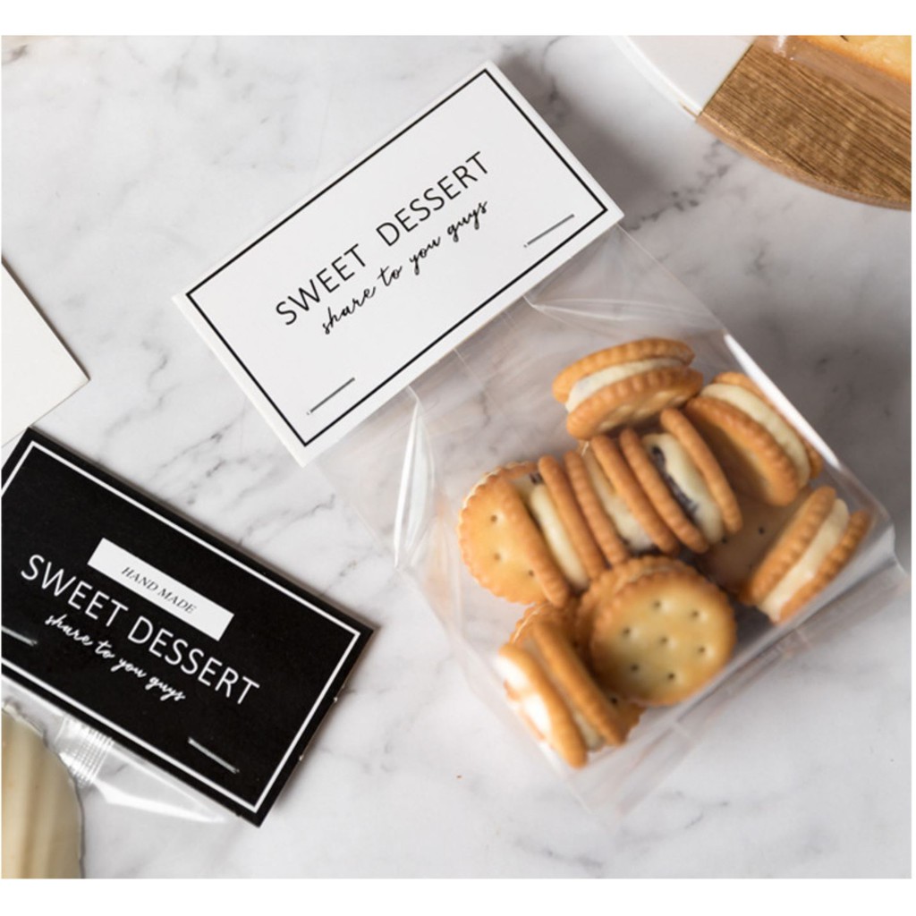 100 cái túi ni lông trong tag giấy dùng để đựng bánh cookies hoặc kẹo các loại