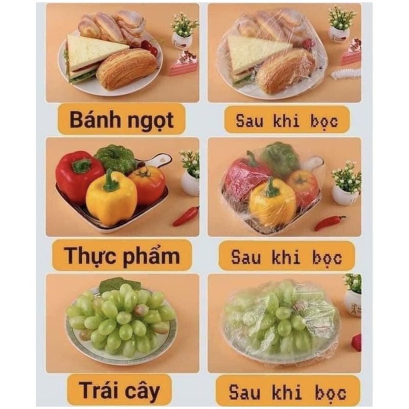 🍯🍯🍯SET 100 TÚI MÀNG BỌC THỰC PHẨM CÓ CHUN CO GIÃN TÁI SỬ DỤNG🥙🥙🥙