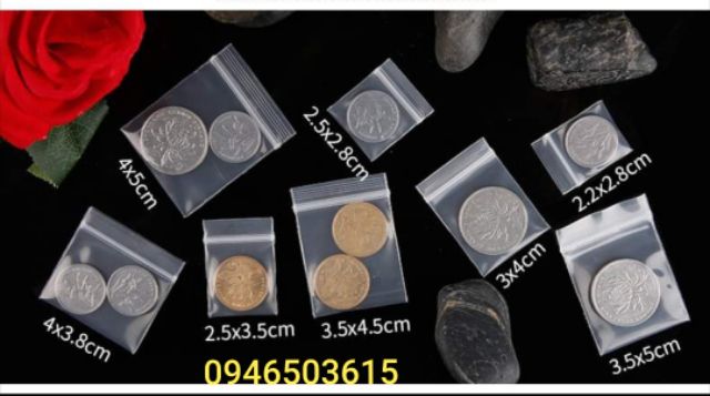 Giới thiệu 100 cái túi zip mini nhỏ viền trắng từ 1.5x2 đến 4x4cm, loaị dày đẹp/ Ấn vào chọn size