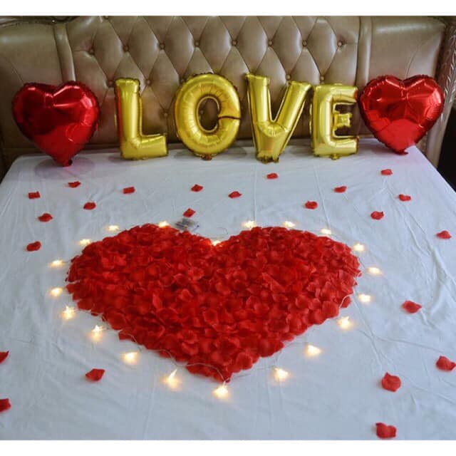 100 cánh Hoa hồng giả lụa trang trí giường cưới