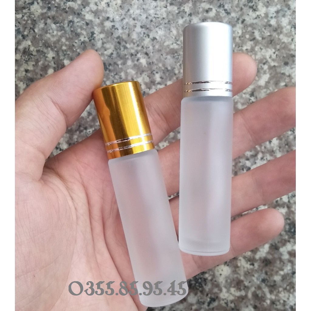 100 Chai bi lăn 10ml thủy tinh thân trong , xoắn nắp vàng, bạc chiết dầu dừa, dầu gấc, nước hoa - lọ bi lăn