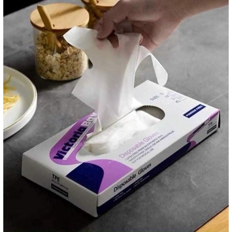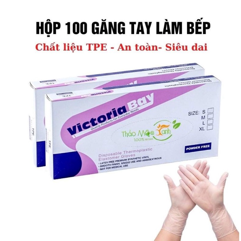 28Găng tay cao su rửa bát làm bếp vệ sinh VictoriaBay siêu dai chất liệu TPE không mùi không bột hộp 100 cái