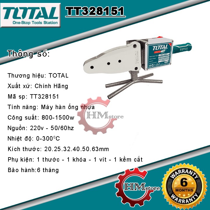 [100% Chính hãng] Máy hàn ống nhựa TOTAL TT328151 1500w - Máy hàn nhiệt 20 - 63mm bảo hành 6 tháng hãng
