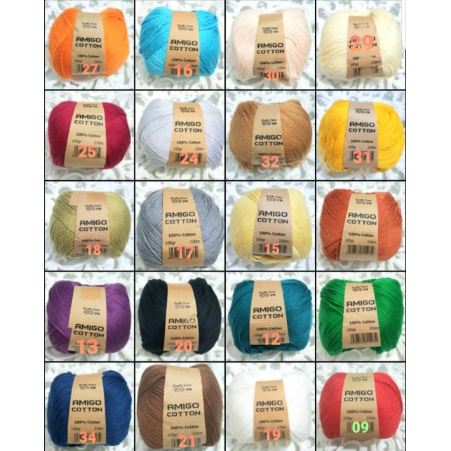 Sở thích & Sưu tầm > Dụng Cụ May Vá || 100% cotton ( Sợi amigo) cuộn 100g mịn mát móc áo, váy, bikini (bảng màu 2)Còn hàng