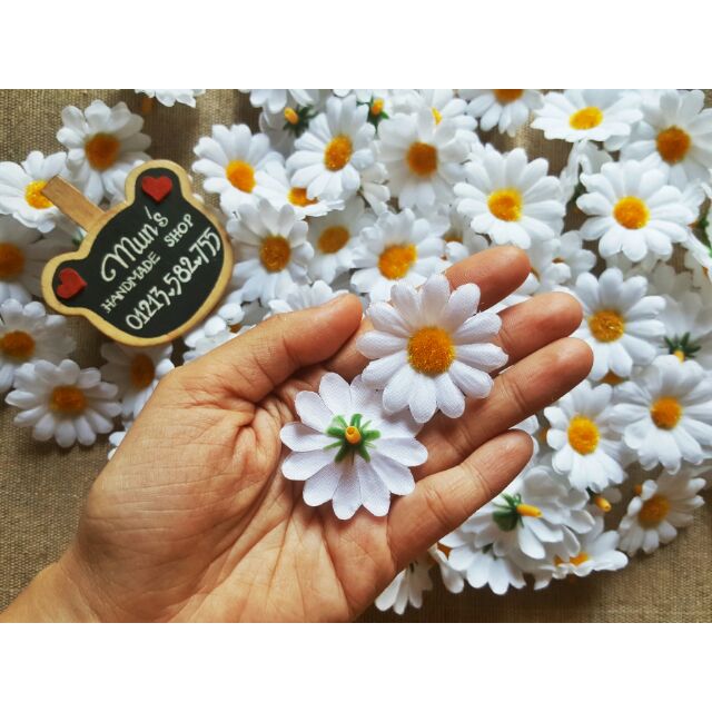 100 đầu bông cúc họa mi trắng / hồng+ Chất liệu: vải + nhụy lông