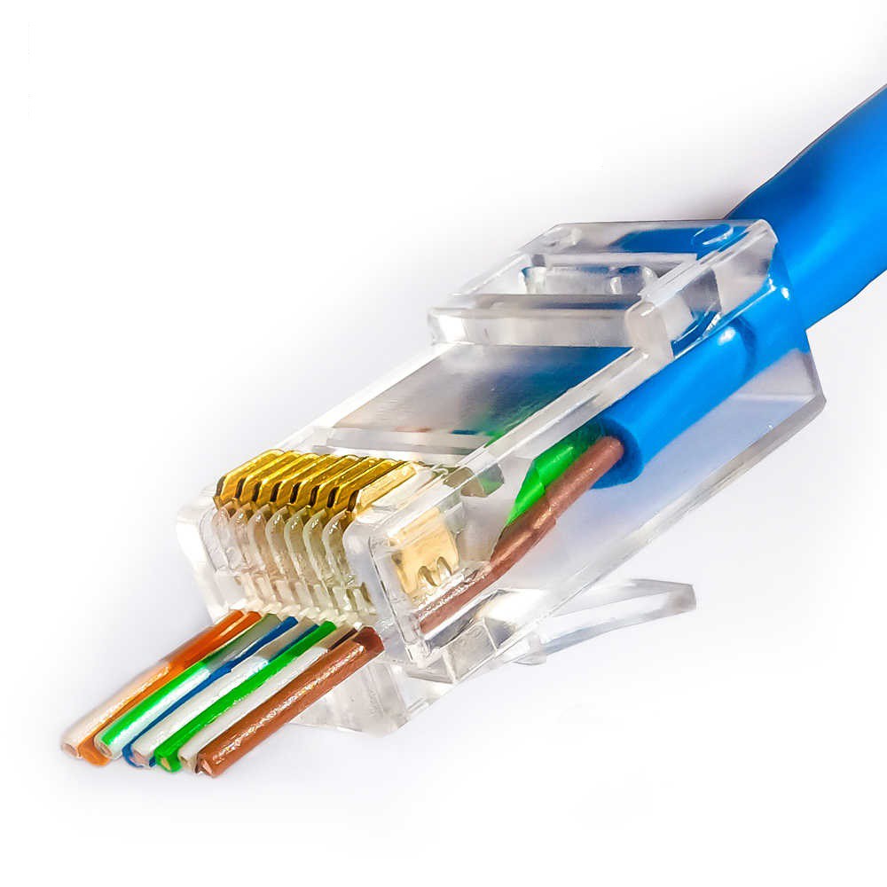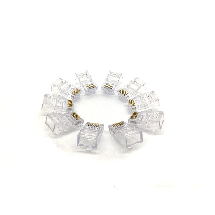 Giới thiệu 100 Đầu Mạng RJ45 Cat5e AMTAKO 53P Vỏ Nhựa Trong Suốt, Lõi Đồng Nguyên Chất