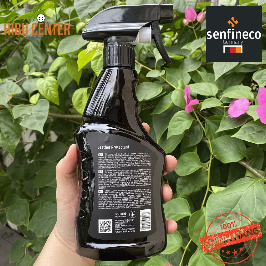 [100% Germany] Hoạt Chất Bảo Vệ Da Senfineco 9955 – 380ML Leather Protectant Làm Mềm, Làm Sạch, Bảo Vệ Da Hiệu Quả[100% Germany] Hoạt Chất Bảo Vệ Da Senfineco 9955 – 380ML Leather Protectant Làm Mềm, Làm Sạch, Bảo Vệ Da Hiệu Quả là một chất đặc biệt có mùi dễ chịu để làm sạch và chăm sóc hiệu quả nội thất xe da, ghế ngồi, bàn ghế, da xe máy và các sản phẩm da trơn khác. Nó có hiệu quả loại bỏ chất bẩn bên ngoài và đồng thời củng cố cấu trúc da bằng cách thẩm thấu sâu các chất hoạt tính. Nó phục hồi độ đàn hồi, ngăn ngừa biến dạng, nứt và khô bề mặt da. Nó tạo thành một lớp chống thấm giúp bề mặt trơn trượt. Nó không chứa thuốc nhuộm và phù hợp với mọi màu sắc của đồ da. Sản phẩm này lý tưởng phù hợp cho các loại xe có ghế sưởi và bề mặt da xốp. Thành phần bao gồm một bộ lọc tia cực tím bảo vệ khỏi bị phai màu dưới ánh nắng mặt trời.