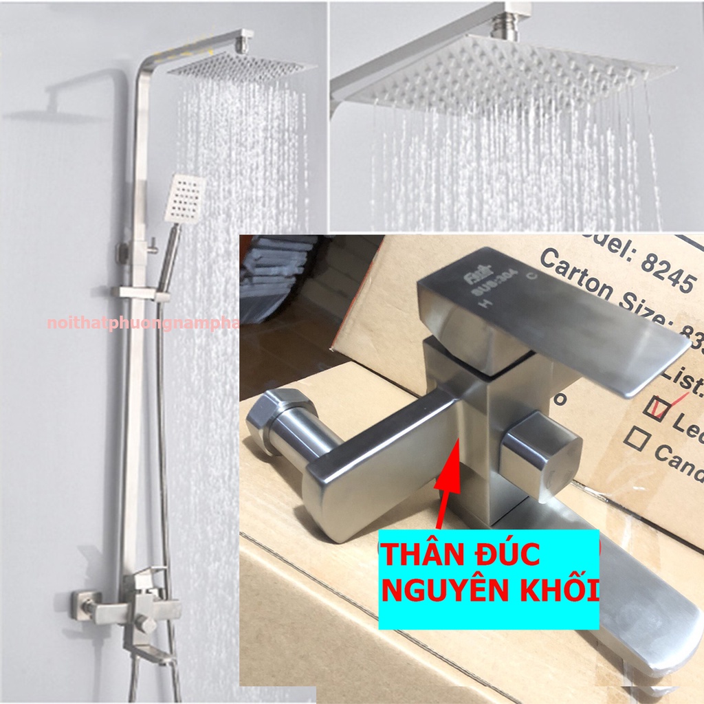 {100% INOX 304} Bộ Sen Cây Tắm Đứng Nóng Lạnh INOX 304 N1005 Fotar và tay sen và dây inox 304 không han gỉ SEN CÂY VUÔNG