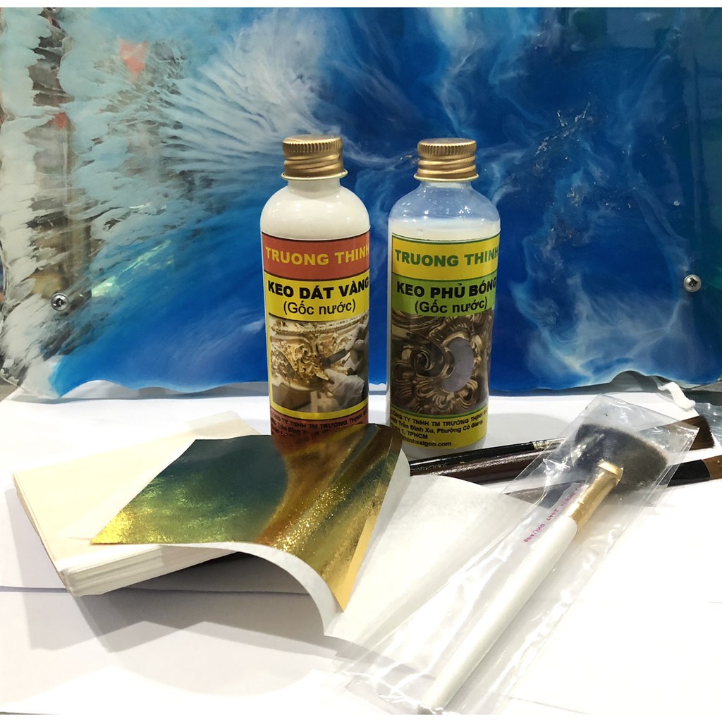 - Sản phẩm dùng kèm: keo dát gốc PU, keo dát gốc nước, phủ bóng 24K , bút vẽ, chổi vệ sinh vàng.