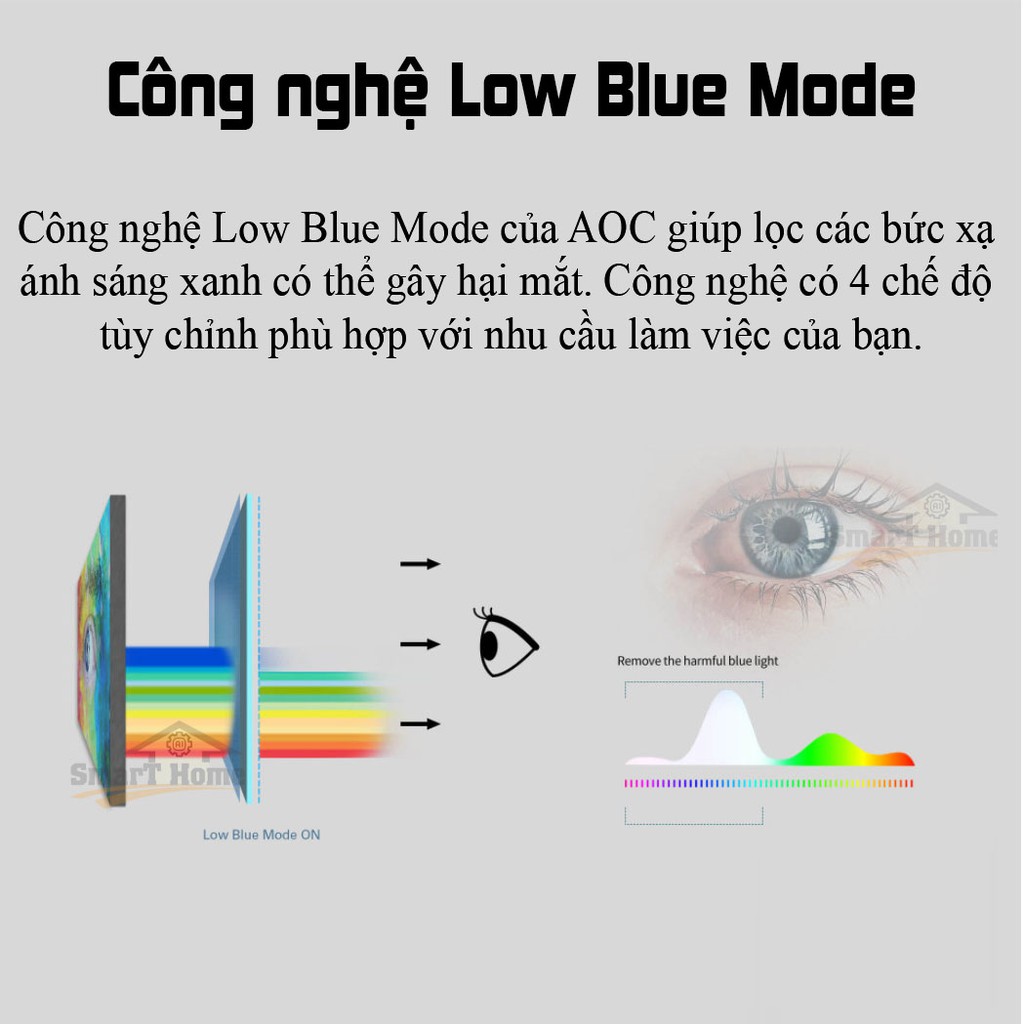 💠Công nghệ Low Blue Moce của AOC giúp lọc các bức xạ ánh sáng xanh có thể gây hại mắt. Công nghệ có 4 chế độ tùy chỉnh phù hợp với nhu cầu làm việc của bạn. (kindly develop visual show the Low Blue Mode).