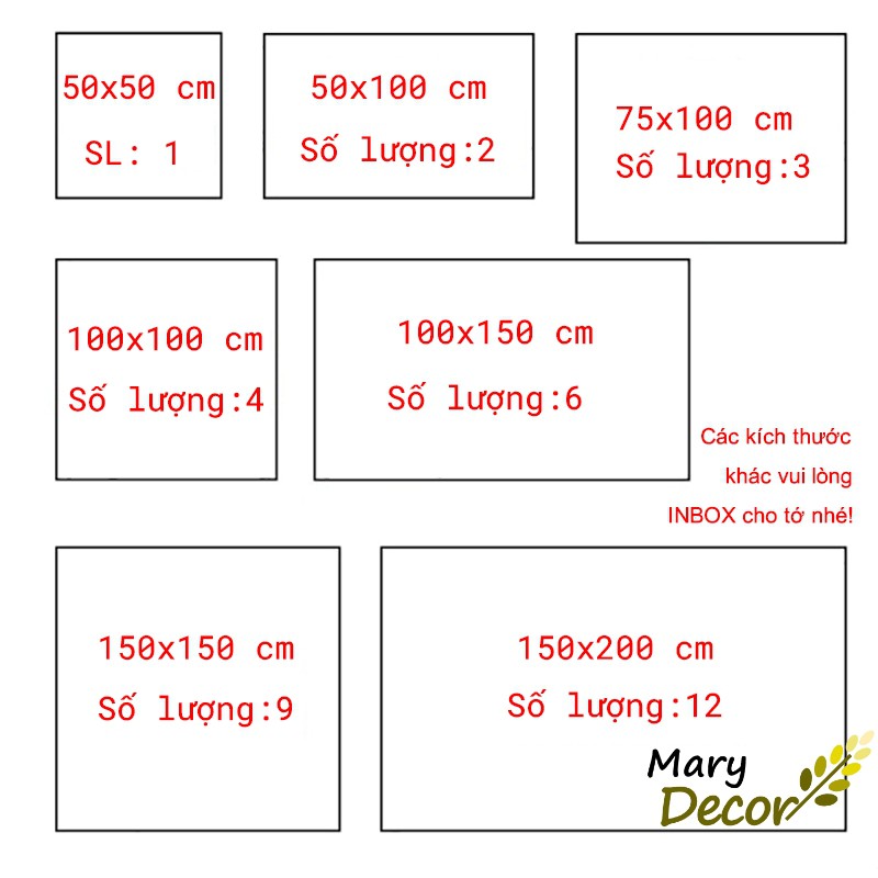 CÁC BẠN LƯU Ý ĐỌC KỸ MÔ TẢ TRƯỚC KHI CHỌN SỐ LƯỢNG NHA - KÍCH THƯỚC THEO YÊU CẦU VUI LÒNG INBOXKÍCH THƯỚC: