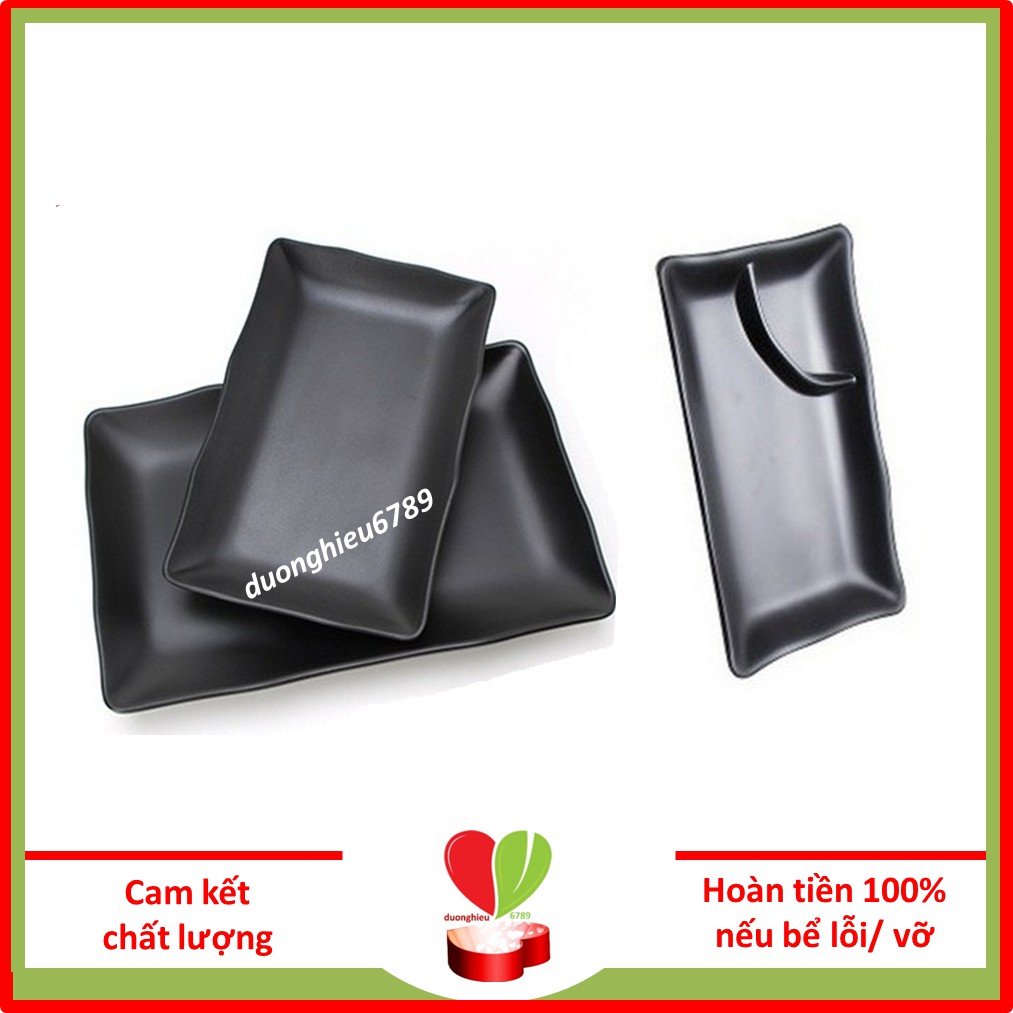Nhà cửa & Đời sống > Bộ đồ bàn ăn > Dĩa || [100%Melamine] Dĩa Nhựa Phíp Đen, Đĩa melamine Hình Chữ Nhật 2 Kiểu Tiện Lợi - Duonghieu6789Còn hàng