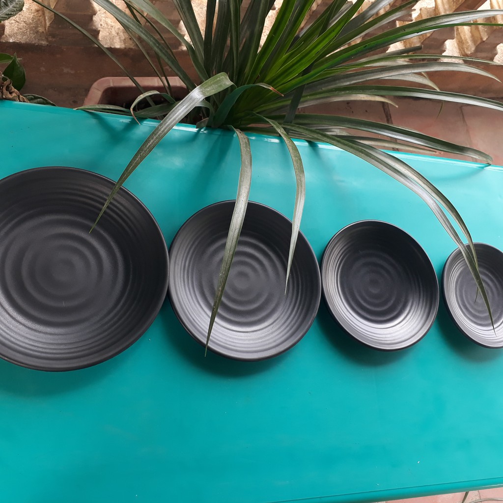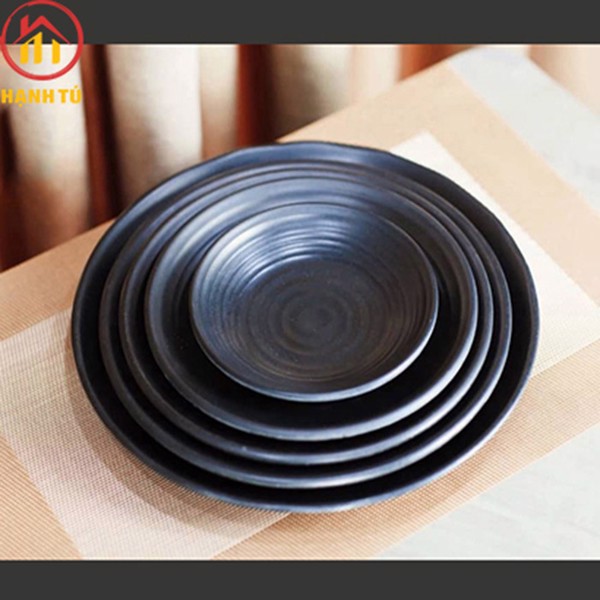 Nhà cửa & Đời sống > Bộ đồ bàn ăn > Dĩa || [100% Melamine] Đĩa Nhựa Phíp Tròn, Dĩa Melamine Dáng Tròn LJP Màu Đen Sang Trọng - Duonghieu6789Còn hàng