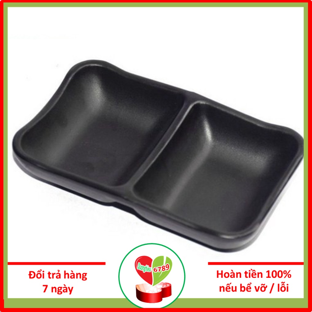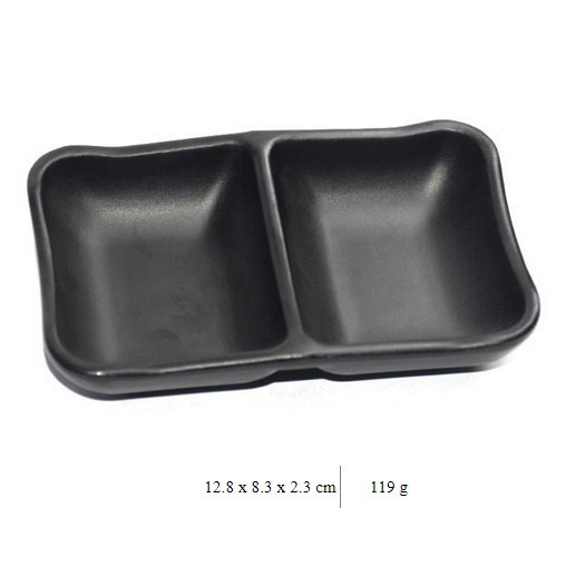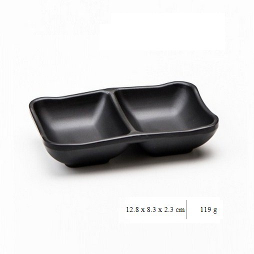 Dĩa Nước Chấm 2 Ngăn Nhựa Melamine Màu Đen Cao Cấp 12.8*8.3cm JWT55Chén chấm với thiết kế 2 ngăn tiện lợi, có thể bày trí cùng lúc 2 loại nước chấm khác nhau, đáp ứng được nhu cầu của những món ăn với nhiều loại nước chấm