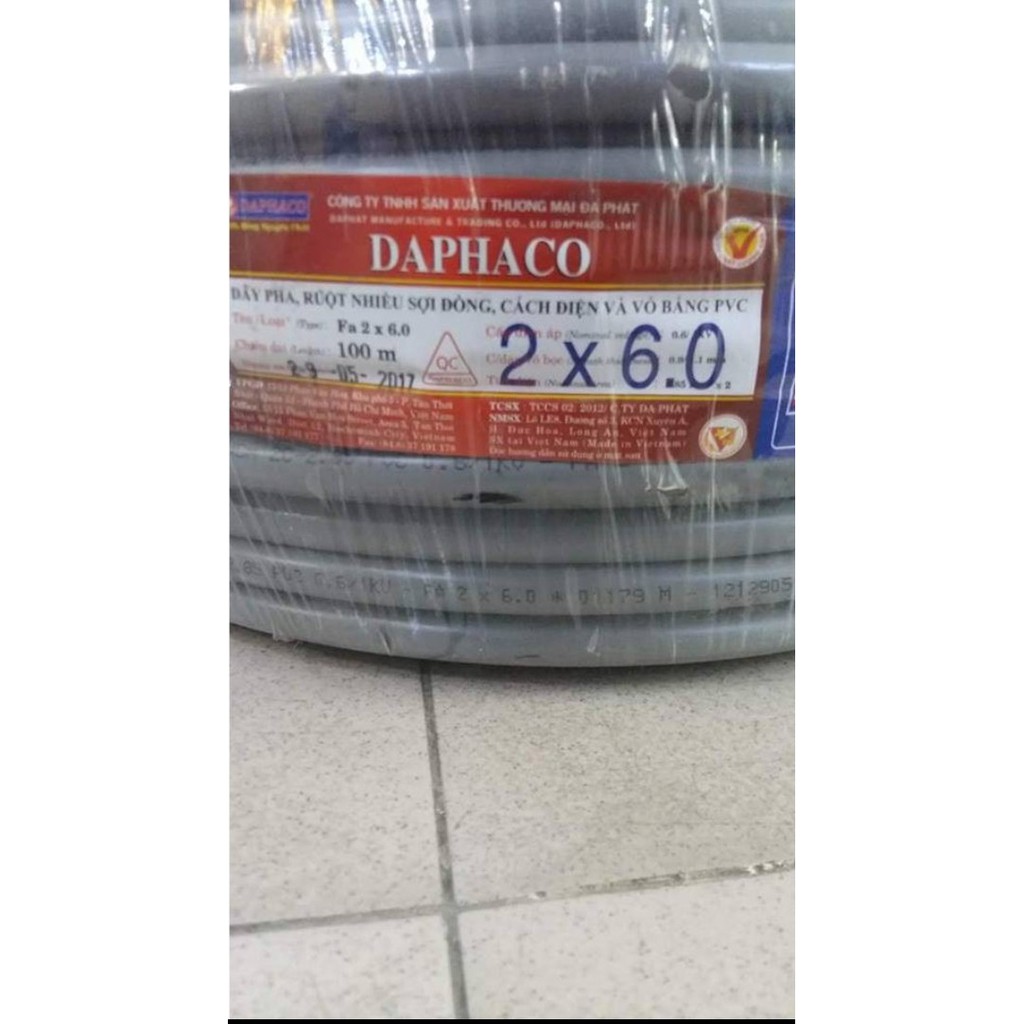 *** Lưu ý : Do cách đặt tên Fadaco dây đôi 2x6.0 là tên sản phẩm FA 2x6.0 đã đăng ký với Cục Sở Hữu Trí Tuệ , hoàn toàn không phải thông số tiết diện 2x6.0 mm2. Mong quý khách lưu ý điều đó .