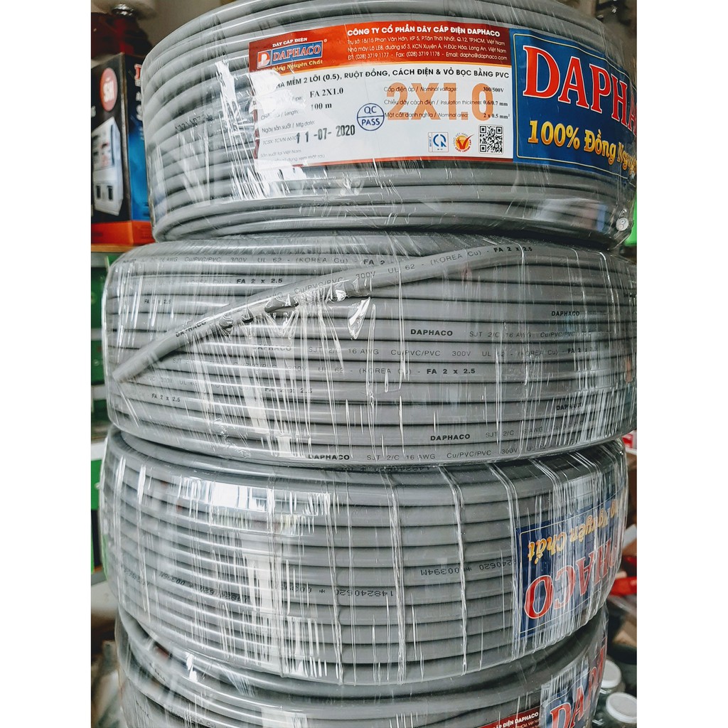 Qúy khách vui lòng nhận hàng sau khi đặt mua vì dây cắt sẽ không nối lại được.Dây điện Fadaco Fa tròn 2x1.0 ( Xám tròn 2 sợi ) -Cuộn 100 mét Hai lớp vỏ bọc