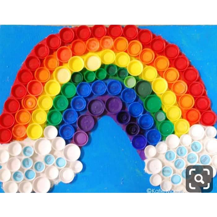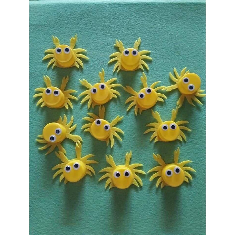 Nắp chai nhựa đủ màu y ảnh đầu dùng để làm đồ chơi mầm non.Sáng tạo thủ công cho bé