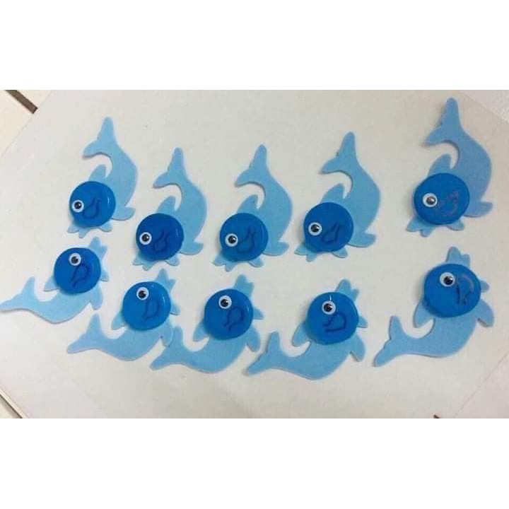 Nắp chai màu đủ màu sử dụng làm đồ chơi mầm non. Thiết kế đồ dùng dạy học cho trẻ.